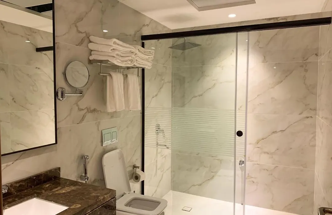 Kamar-kamarnya dilengkapi dengan pembuat kopi/teh, brankas pribadi dan pengatur suhu, serta kamar mandi dengan bilik shower dan toilet terpisah. Semua kamar di Midan Hotel & Suites Al Aziziya memiliki lantai ubin.